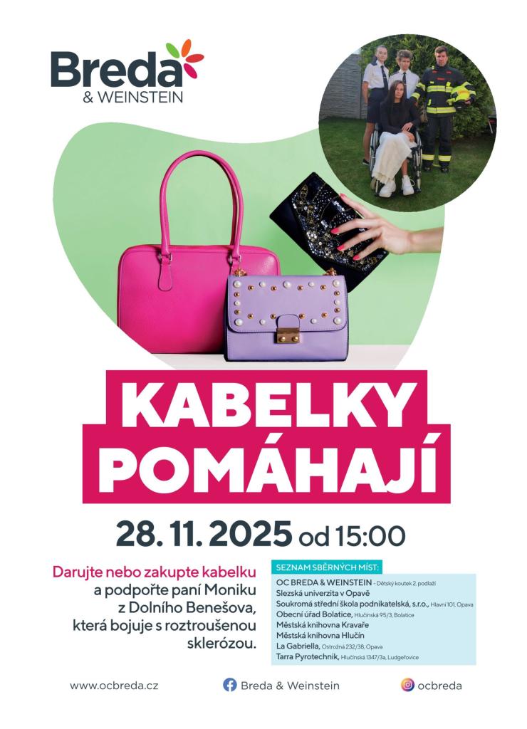 Darováním nebo zakoupením kabelky podpořte pan Moniku z Dolního Benešova, která bojuje s roztroušenou sklerózou.