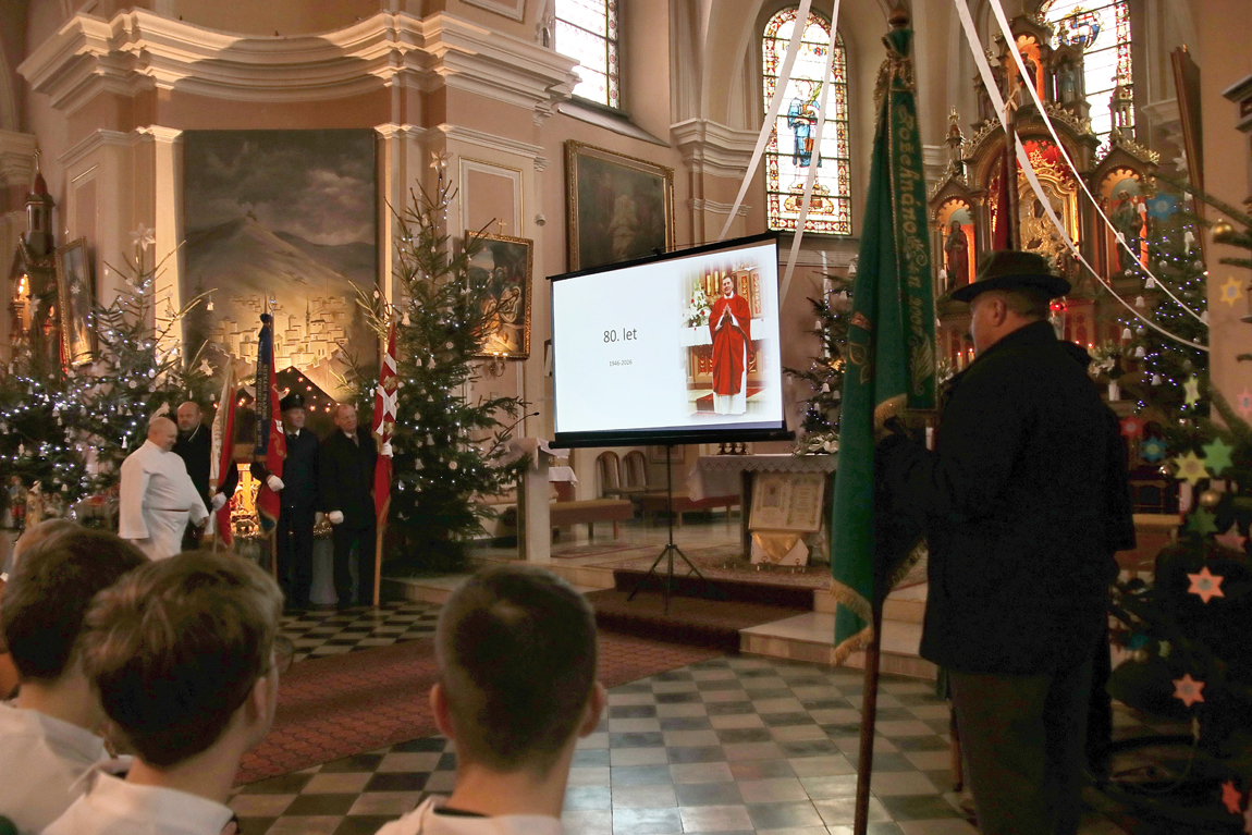 Slavnostní mše svatá probíhala za účasti rodiny, zástupců spolků, hostů a farníků v srdečné atmosféře a s vděčností za kněze, který farnost spravuje více jak dvacet let.